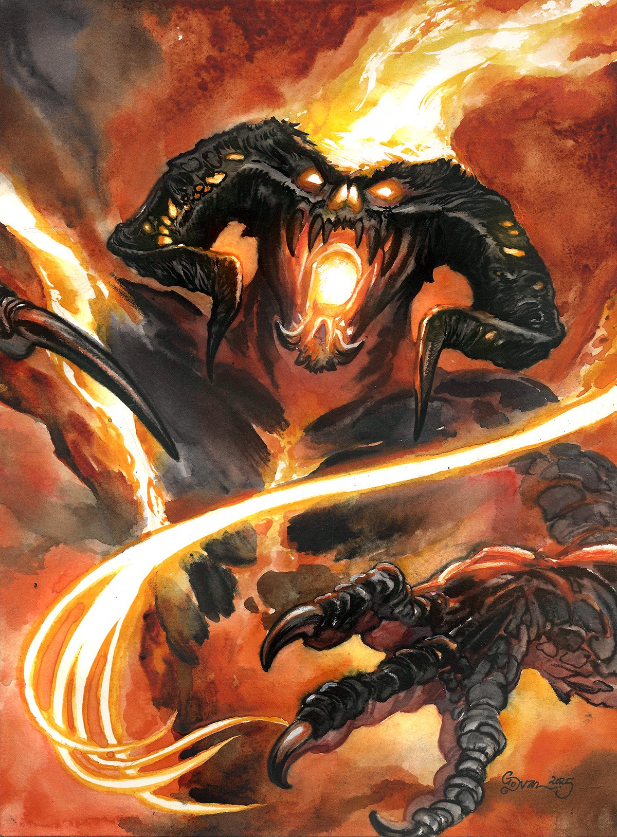 This is an original 9x12 in watercolor painting of the Balrog from Lord of the Rings Painted on 140 lb Arches. Watercolors used were honey-based M. Graham.