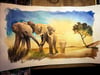 2020 - this was a poster piece developed for the Tuskers Graphic novel that came as an insert inside the book. The original is ready to frame with a generous edge space for a matte. It depicts three of the “hero” elephants from the book coming over a hillside savannah.